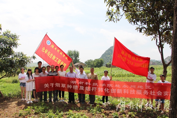 据悉,“星空app官网赴永州地区关于烟草种植及烟杆转化创新科技服务社会实践团”立项为2016年湖南省“三下乡”推报全国重点团队,由化学与生物工程学院教授、博士及学生骨干组成。团队以烟草种植及病虫害防控的核心技术示范、烟杆生物质的高效转化技术及产品展示,向广大烟农进行科技知识与成果的“精准对接与扶贫”。