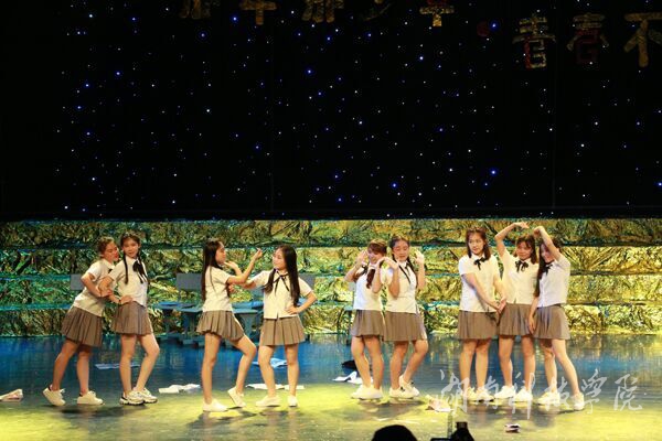 晚会以原创歌曲闪亮新星火爆开场,点燃了台下观众的热情。歌曲《他说》以及《再回首》以不同的风格展现了美好而短暂的大学时光,温馨而难忘的回忆,表达着对青春的不舍与怀念。华尔兹《假如爱有天意》以柔美、婀娜、优美的舞姿展现了美院学子独特的风采。哑剧《文明观影》则以诙谐的动作、生动的表演激励同学文明观影。精心筹备的邀请毕业家长观礼,感动了在场的每一位毕业生。