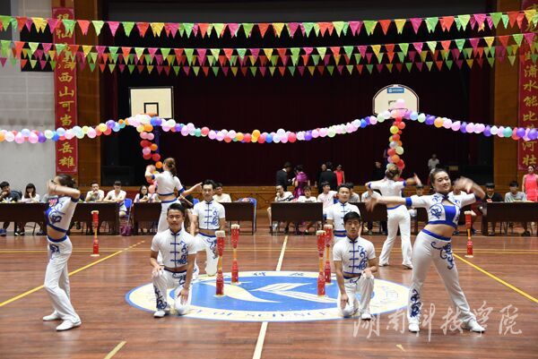 晚会上,同学们表演的爵士舞、肚皮舞和拉丁舞热情似火、双人瑜伽唯美传神、更有新颖创意的瑶族健身操。卢丹旭和庄鸣两位老师献唱的一首流行歌曲更是将活动带向欢乐的高潮。整台晚会载歌载舞,大家围坐在舞台四周,气氛热烈,给毕业生们留下深刻印象。