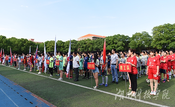 曾宝成在致辞中指出,积极推进我校校园足球运动开展及校园文化建设工作,搭建足球活动交流平台,传承校园足球文化,充分发挥足球运动的教育功能,通过赛球、看球、品球、论球,感悟足球的魅力,领悟足球的内在精神,以“足球精神”引导学生成长。他希望全体参赛队员认真准备,刻苦训练,顽强拼搏,公平竞赛,胜不骄败不馁,充分发扬足球的竞技精神,赛出风格和水平,展现当代大学生健康向上的良好形象。