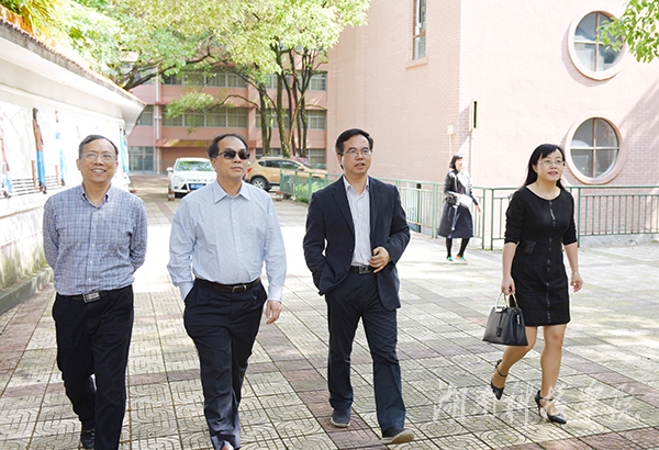 本网讯(陈小燕)4月21日,湖南省社会科学院党组成员、副院长周小毛来校指导工作。永州市委宣传部副部长王再兴,学校党委书记陈弘陪同参观校园,并参加“新常态下省级哲学社会科学重点研究基地的使命与智库建设”学术座谈会。