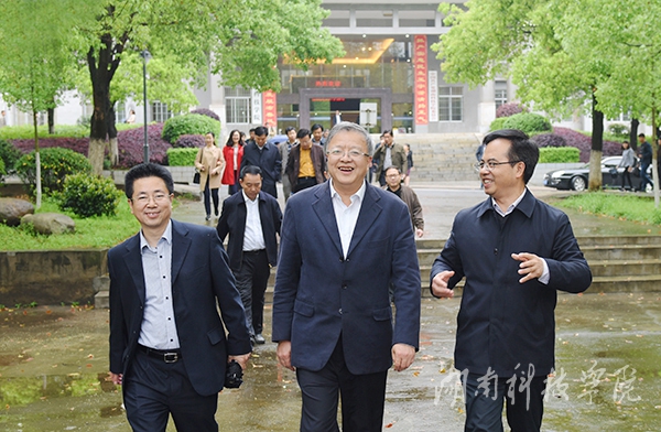 本网讯(记者 张云芳 摄影 何帅文)4月7日下午,省政协副主席欧阳斌、省政协文史学习委员会主任张智军等一行在永州市政协主席唐定、市政府副市长刘尤碧等领导的陪同下莅临我校,考察了电子与信息工程学院创新创业中心、外国语学院菁菁书院、美术与艺术设计学院大学生创新训练中心、图书馆、音乐楼、体育馆。校领导陈弘、曾宝成、宋宏福、郑山明、李常健、程智开陪同调研。