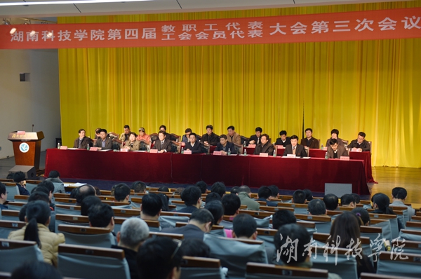 本网讯(记者 何霞 徐千惠 欧盼迪 摄影 何帅文)3月26日下午,我校第四届教职工代表暨工会会员代表大会第三次会议圆满完成各项议程,在尚美楼二楼演播厅胜利闭幕。会议由党委副书记唐艳明主持。
