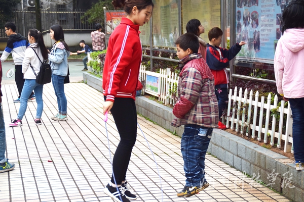 传媒学院、电子与信息工程学院服务团:特教之行,演绎特别的爱。时间:3月6日,地点:永州市特殊教育学校。