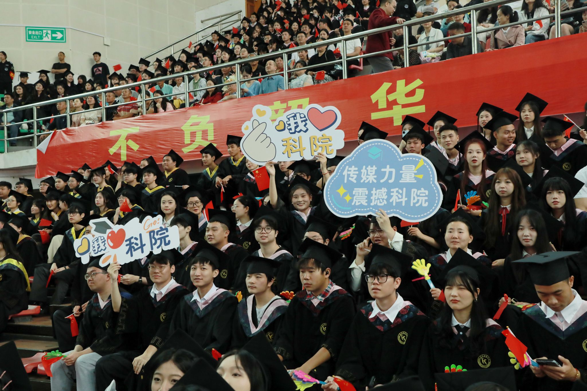 毕业典礼前,全体师生唱响青春的旋律,《遇见·湘科院》等主题歌曲和毕业视频短片则带领大家回顾了毕业生的大学四年,表达了同学们对未来人生的向往与期待。