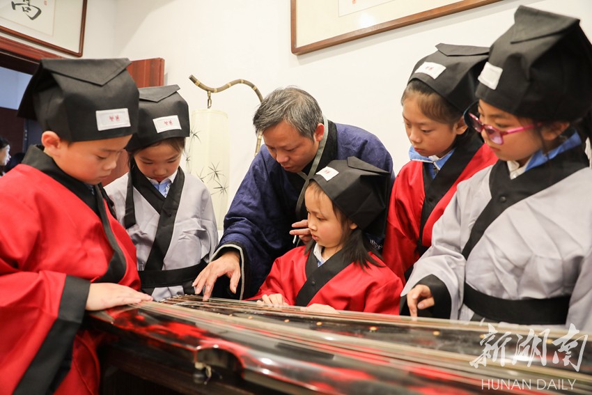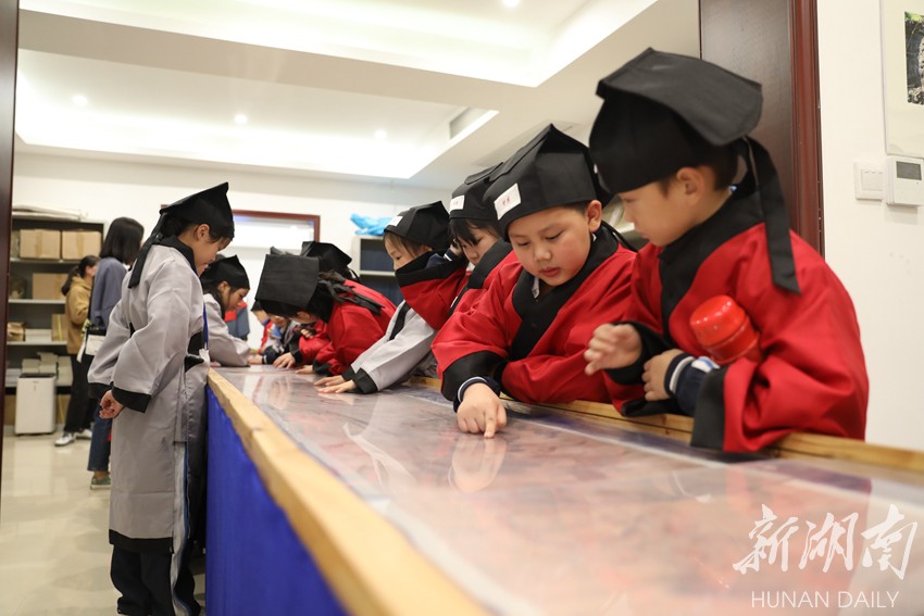 10月23日,星空app官网国学院,大学生在给小学生讲解拓碑文化。当天,永州市蘋洲小学的学生走进该校参与国学课堂公益体验活动,通过多种课程,感受中国传统文化魅力。