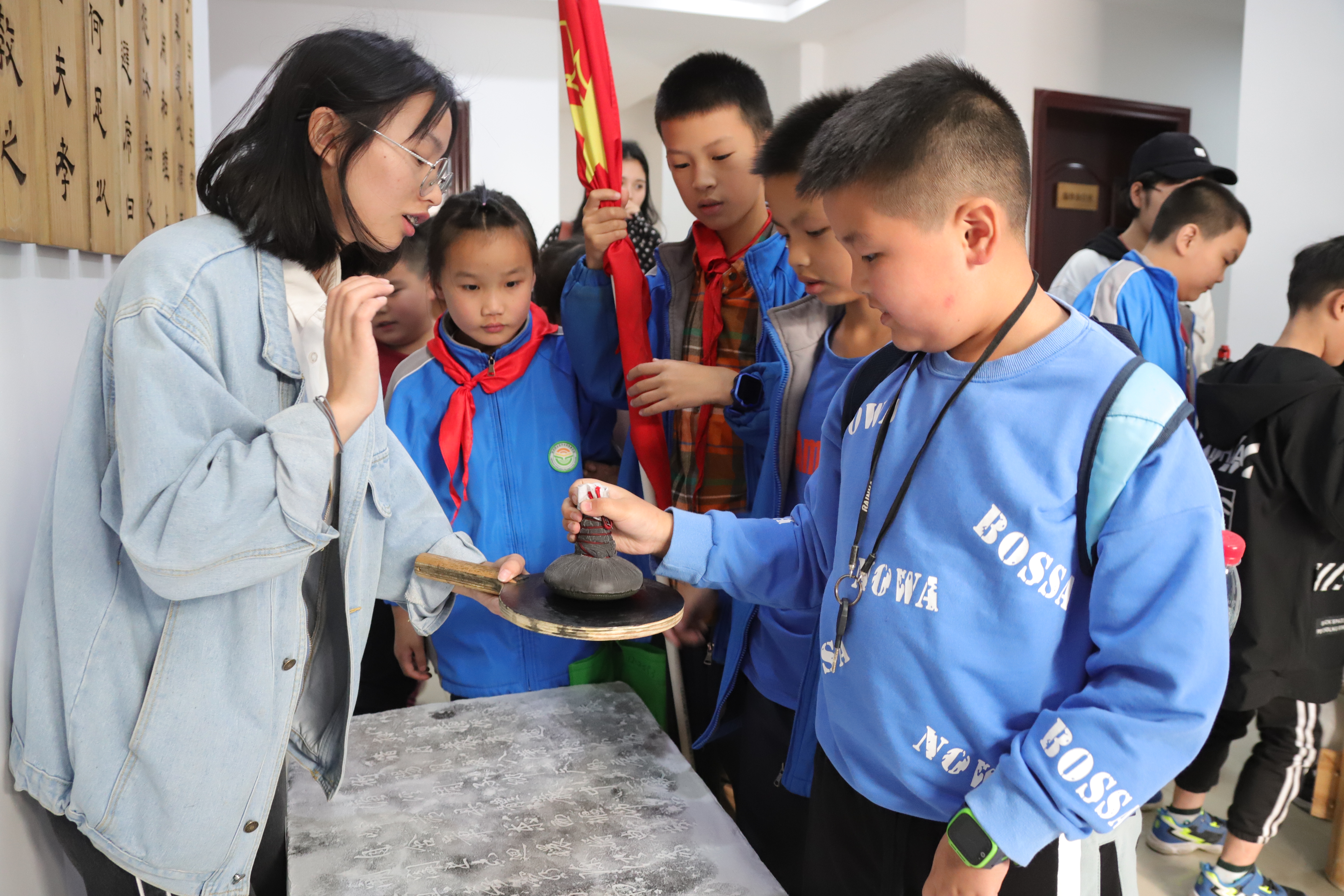 本网讯(记者 文婷婷)“出淤泥而不染,濯清涟而不妖。”11月5日下午,位于星空app官网国学院旁的“小濂溪”花园传来琅琅读书声,永州市蘋洲小学三年级四个班共180余位师生来到国学院体验国学课堂。本次国学体验分为“汉服礼仪”、“九疑古琴”、“碑刻传拓”、“国学小讲座”四个课堂,分别由夏翠兰、欧阳平彪、敖炼老师和张京华院长带领各自的课程小组主持,国学院17级精英班的16名学生担任助教。