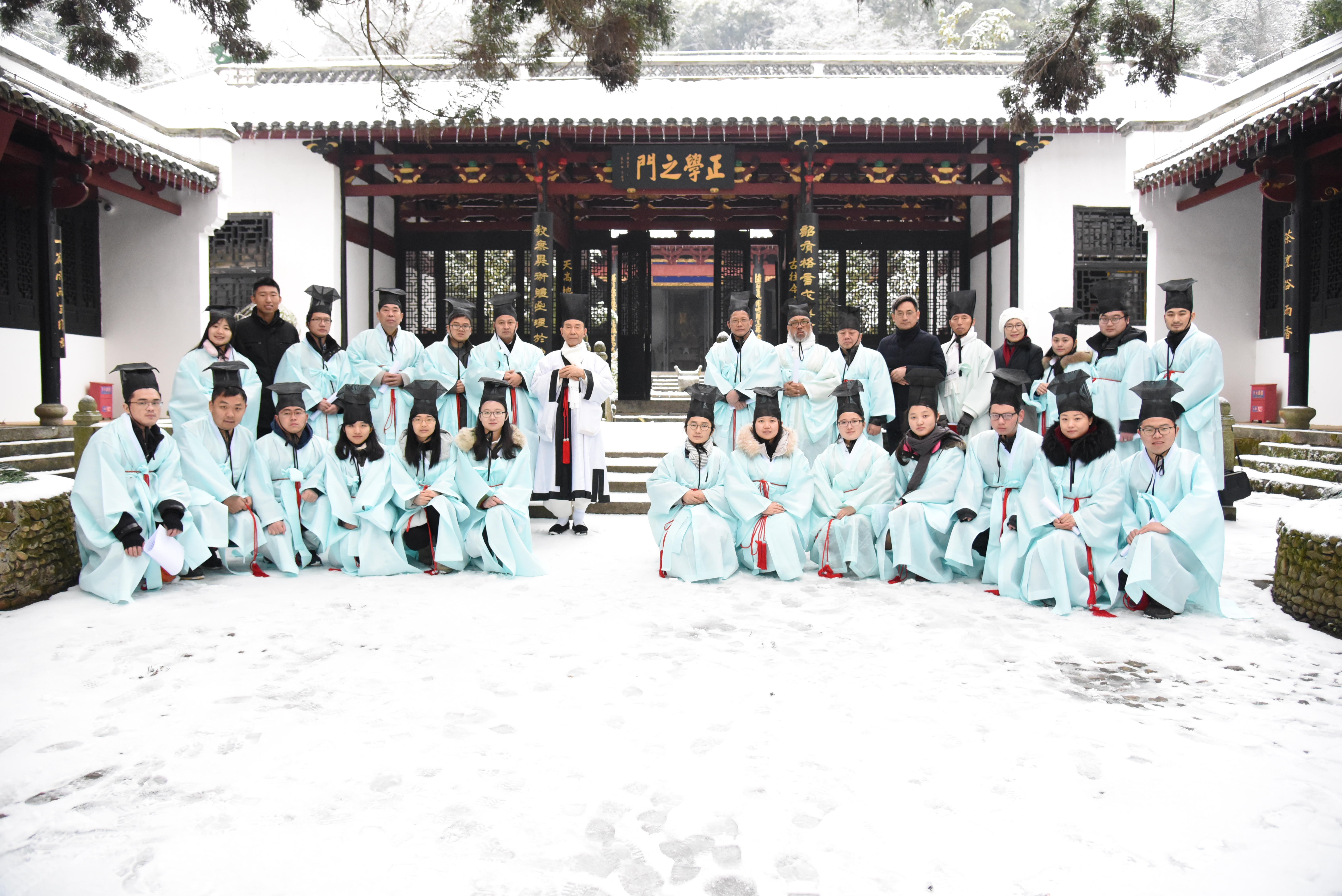 1月26日,初到江西九江,漫天瑞雪飞舞,五老峰也已披上银装,心情无比激动。下午到达白鹿洞书院后,即在书院内大成殿、周子祠、朱子祠进行祭祀活动,以表对孔子、周子、朱子等圣贤的尊敬。后面几天,则是对传统书院学习、生活的体验。