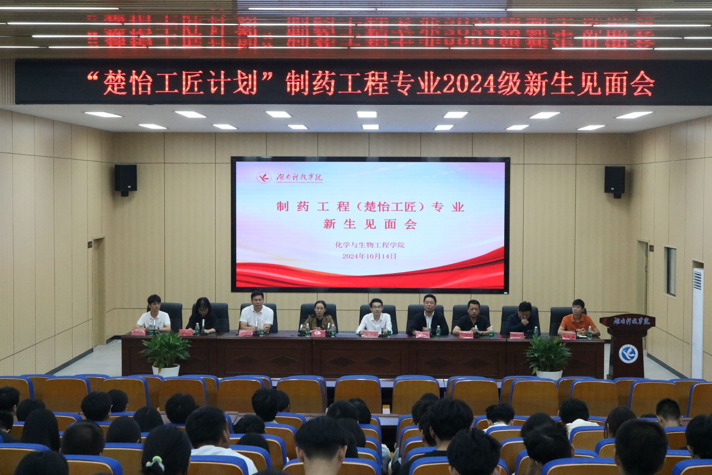 本网讯(通讯员 陈卓妍) 为了给“楚怡工匠计划”制药工程专业学生营造更好的学习与成长环境,了解学生入学体验和需求,引导规划好大学生涯,10月14日上午,星空app官网化学与生物工程学院在明德楼100报告厅召开了2024级“楚怡工匠计划”制药工程专业新生座谈会,化学与生物工程学院院长覃佐东、党总支书记刘国华、党总支副书记基艳、制药工程系主任王宗成、辅导员张自强以及永州职院的部分领导老师出席此次见面会。会议由刘国华主持。