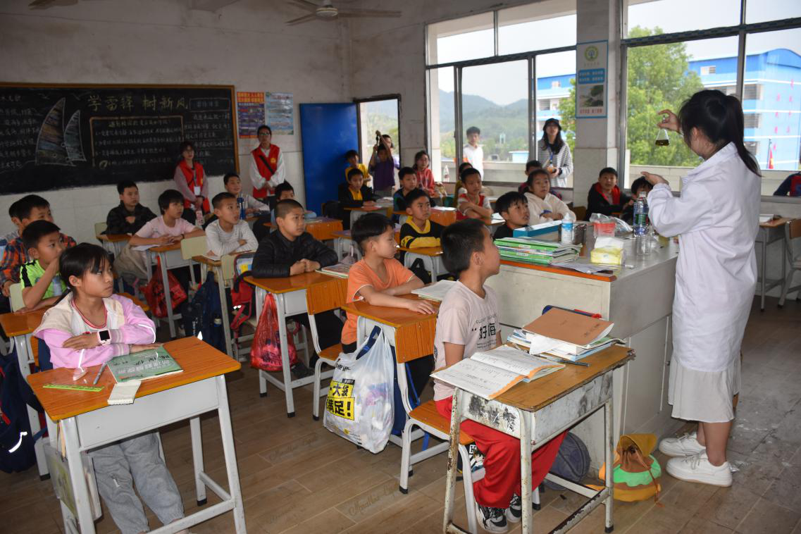 智慧树小学位于距星空app官网近40公里的珠山镇,这里地处偏僻,教室和田径场就是小朋友们每天的活动范围。当身穿红色志愿服的哥哥姐姐们走进学校,孩子们的眼里充满了好奇和兴奋。一声声“哥哥、姐姐好”表达了他们对哥哥姐姐的热烈欢迎。活动过程中,志愿者们通过自制PPT耐心地为小朋友们传授种植知识,小朋友们坐得端正笔直,认真听讲,每问及一个问题,孩子们都踊跃举手发言,课堂氛围十分融洽。同时,志愿者们结合学院专业特色,在小学课堂上安排科普实验,增进了孩子们对科学知识的认知。