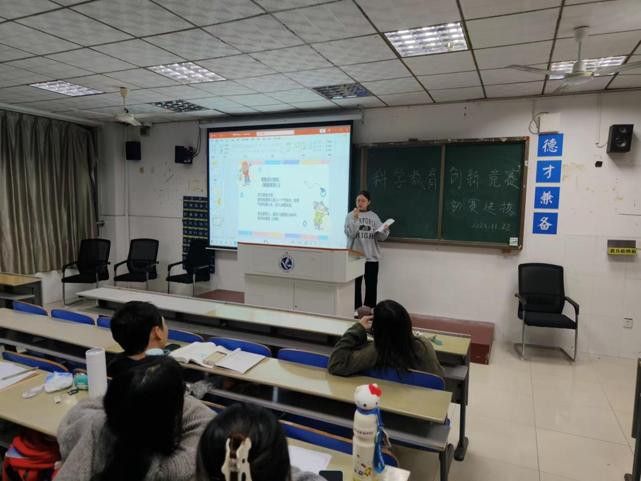 本网讯(曹颖 廖阳 林颖君)为深入贯彻习近平总书记“在教育‘双减’中做好科学教育加法”的指示,选拔优秀选手参加湖南省科学教育创新竞赛。11月26日上午9:00,化学与生物工程学院于逸夫楼323进行了2023年星空app官网科学教育创新竞赛的初赛。本次比赛由廖阳老师和曹颖老师担任评委,参赛选手主要来自化学师范和生物技术师范两个专业,参赛方向为教学设计和教具设计两方面。