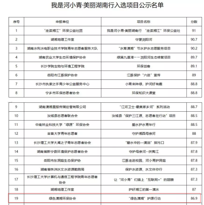 绿色潇湘环保协会主持的“绿色潇湘护源行动”成功入围“我是河小青·美丽湖南行”项目,是我校社团建设上追求科学创新,坚持协会活动与专业教育相结合,培育学生绿色成长理念,坚持全域育人德育工作新思想引导学生社团发展获得的又一成果。