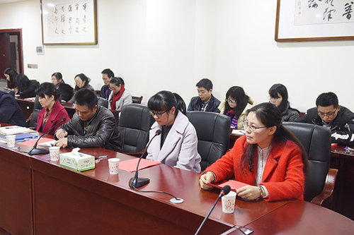 我院教师代表覃佐东、闫荣玲、周闻名分别以《抓住新时代机遇,为学校建设贡献力量》、《不忘初心潜心教学 精心呵护桃李芬芳》、《立德树人,做好大学生思想政治教育工作》为题发言。“单位离开谁都能运转,但你离不开单位,你要努力证明,你在单位很重要。”覃佐东博士与大家分享了人民日报推荐的《善待您所在的单位》一文,与大家共勉。闫荣玲老师对大家分享了自己的教学感悟,她表示,在新的一年,她和同事们将继续策马扬鞭,为孕育桃李芬芳而努力。周闻名老师与大家分享了学生工作的心得体会,她说,2018年,将继续致力于将学生培养成为具有远大理想、坚定意志、家国情怀、科学素养和工匠精神的人而努力,将继续为学校和学院的发展奉献力量。