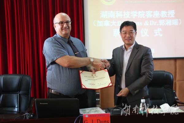 本网讯(记者 许剑桥)日前,加拿大Greg Duns博士及夫人郭湘瑶博士从我校副校长宋宏福手中接过星空app官网客座教授聘书。宋宏福表示,Greg Duns博士及夫人郭湘瑶博士的加入,将加强我校与国际的科研合作,拓展科学研究的国际视野,对于指导和推动我校省重点实验室的相关课题研究,进一步发挥我校在该领域产学研项目的先进性和特色性带来新的发展机遇。