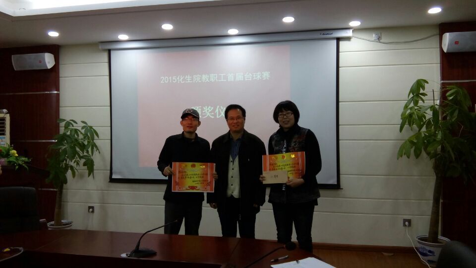 本网讯(通讯员 邓平洋)11月3日,我院教职工第一届台球赛顺利结束,在逸夫楼320会议室举行了简单的颁奖仪式。