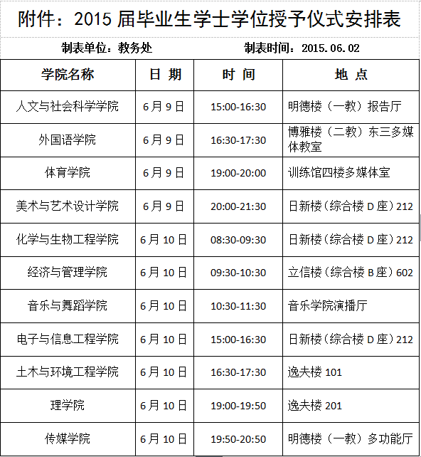 关于举办我校2015届毕业生学士学位授予仪式的通知