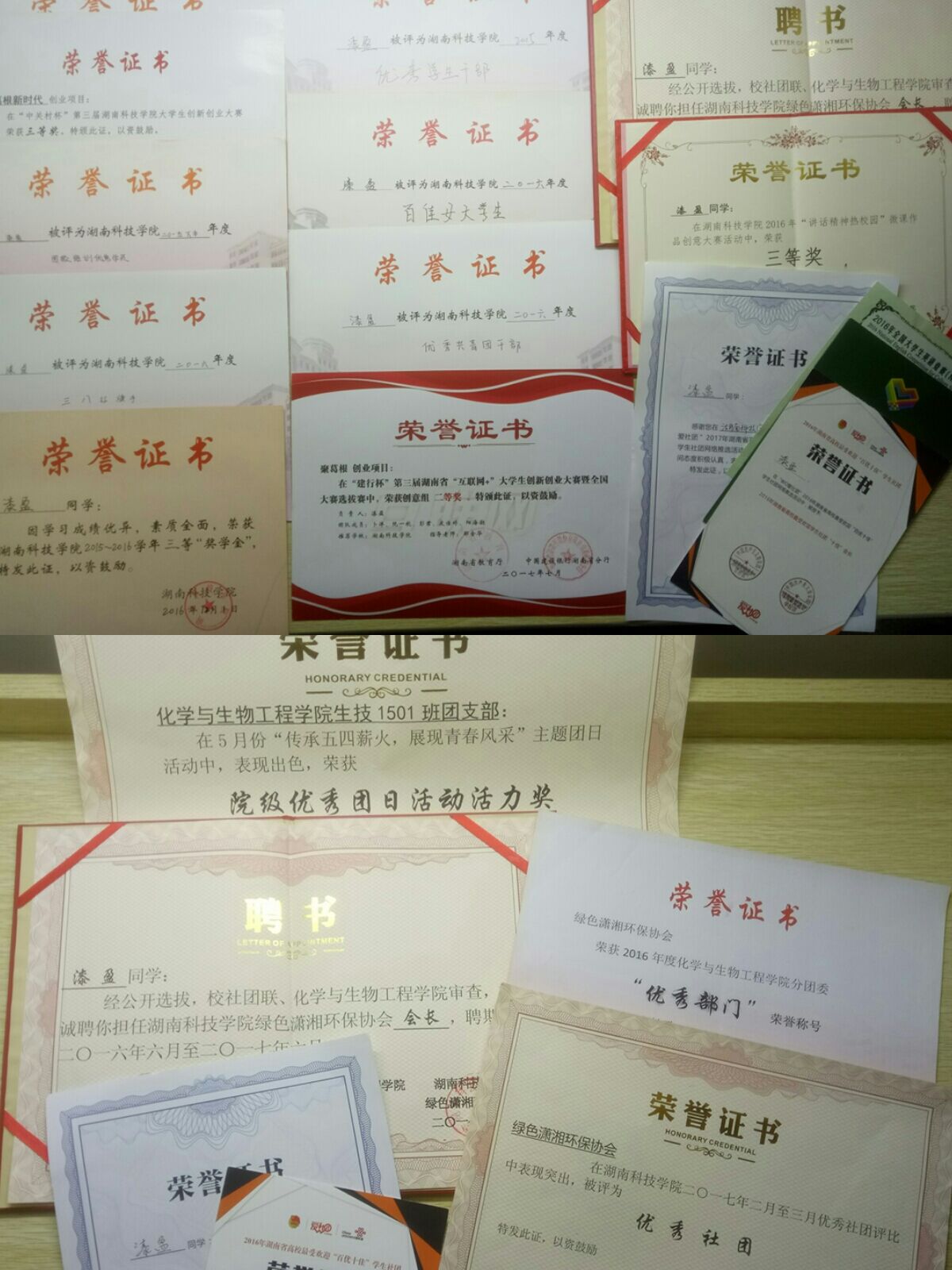 据悉,漆盈在大一时期任职团支部书记,在大二时期担任绿色潇湘环保协会会长,在大三成功竞选为院学生社团联合会主席并担任17届生物技术专业新生副班主任。