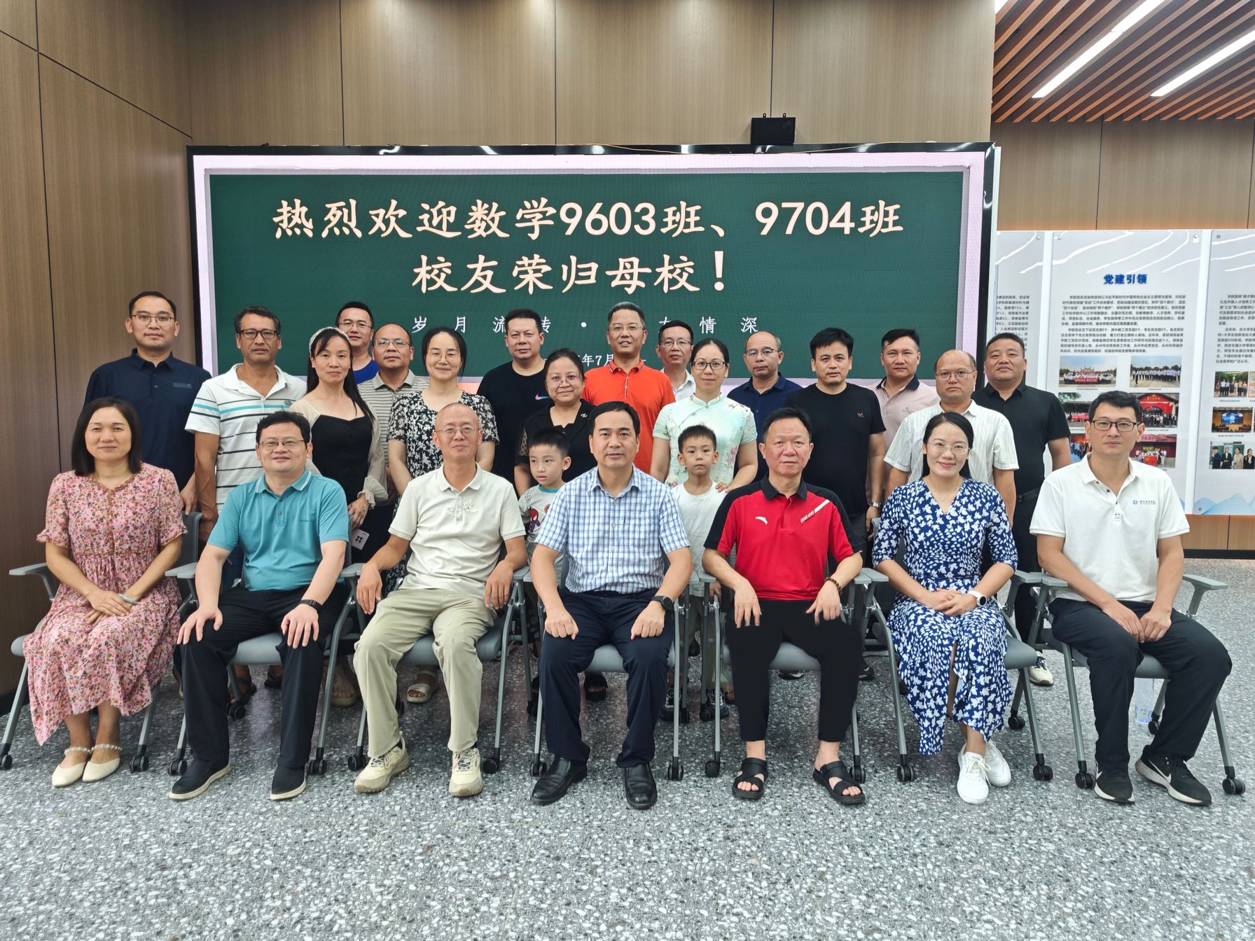 本网讯(通讯员 龙枚樱)7月26日,我校理学院数学9603班、9704班25位校友代表重返母校。校党委副书记、校长黄创霞,理学院、离退休工作处相关负责人等与校友们欢聚一堂,畅叙师生情谊、共谋发展未来。