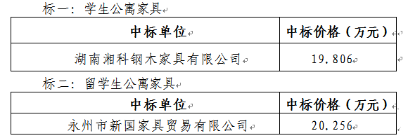 星空app官网采购中心对星空app官网2018年学生公寓及留学生公寓家具采购项目于2018年7月17日进行了自行招标,经评审,现将结果公告如下: