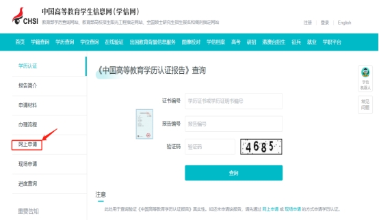 2002年以前毕业生可登录学信网https://www.chsi.com.cn/直接进行学历认证,步骤如下:点击“学历认证”-“网上申请”-“点击进入网上申请系统(Start an Application)”,实名注册后登录系统,按系统提示上传毕业证、身份证原件,待学历认证中心审核后,打印学历认证报告。具体操作如图: