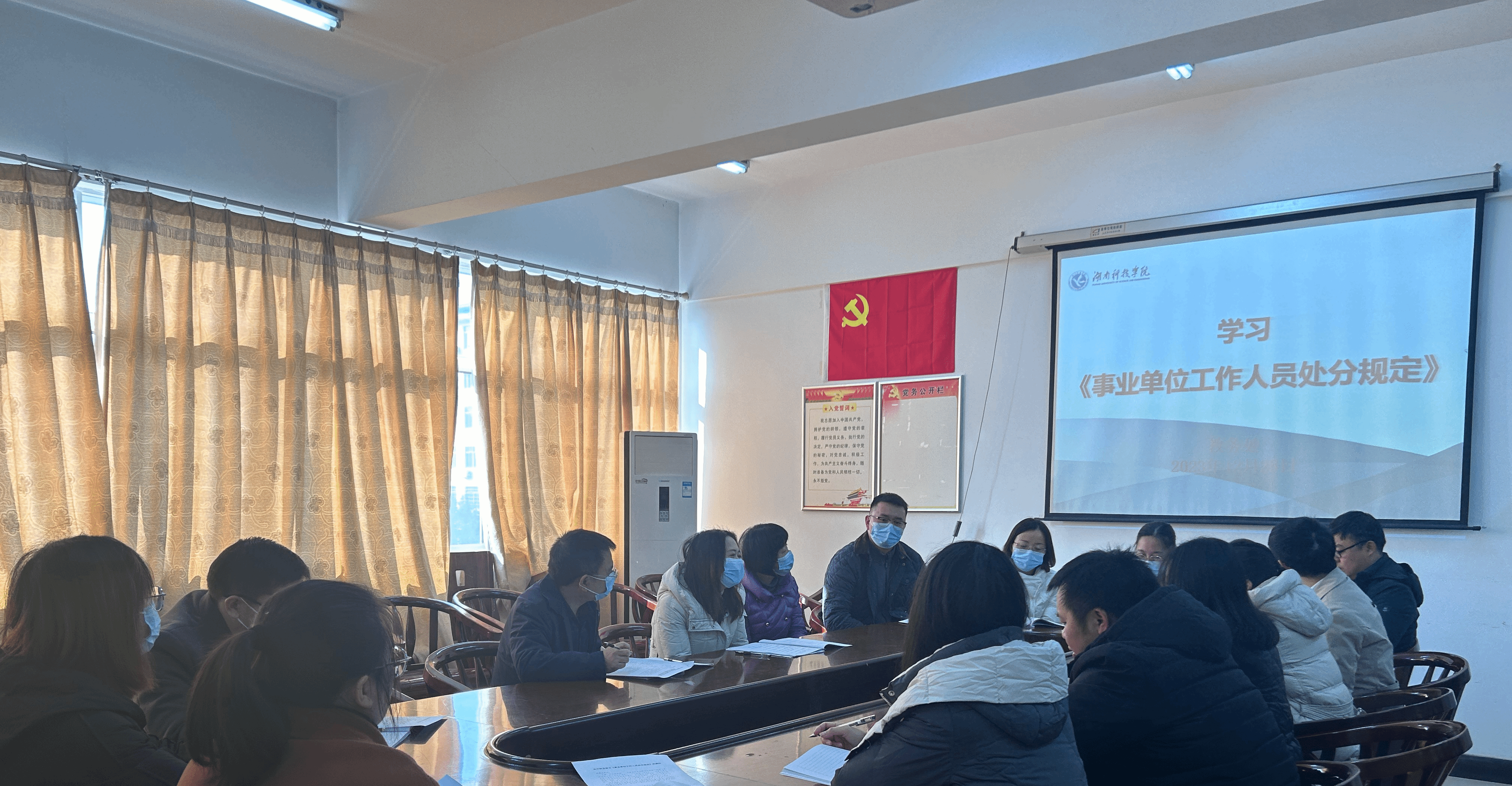 为进一步传达学习好事业单位纪律规矩,规范事业单位工作人员行为,加强警示教育和师德师风教育。12月28日上午,教务处组织全体教职工集中学习《事业单位工作人员处分规定》。