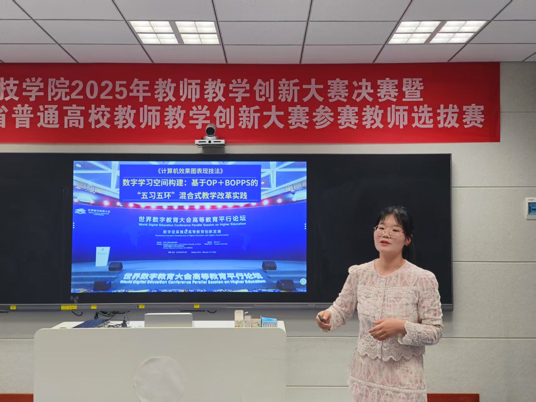 本网讯(通讯员 吴潭)4月11日下午,我校举行2025年教师教学创新大赛校级决赛暨省级比赛选拔赛。经过各学院初赛推荐,组织专家组对竞赛文档盲审,共有8个教学团队参加了校内决赛,每位比赛选手进行12分钟的教学创新汇报,之后评委进行现场提问。