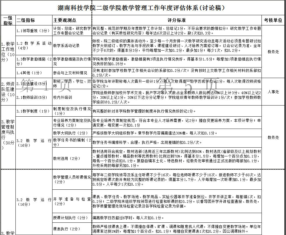 星空app官网二级学院教学管理工作年度评估体系(讨论稿)