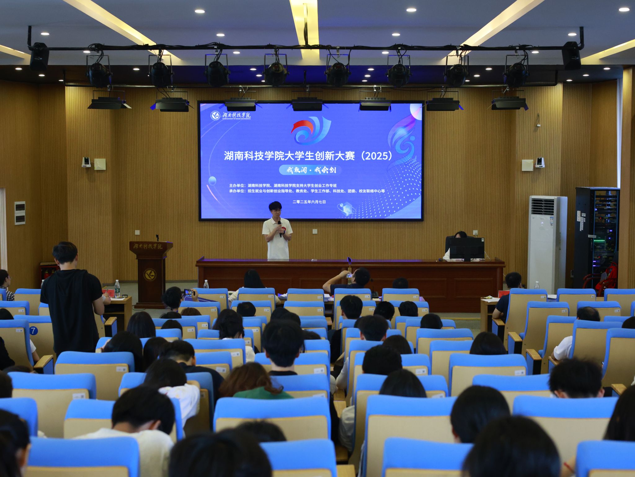 本网讯(通讯员 龙泉)6月7日,学校举行2025年大学生创新大赛总决赛,大赛邀请3名校外专家、2名校内专家担任评委。副校长郑银芳,各教学学院党总支书记、创新创业专干以及各项目指导老师到场观摩。