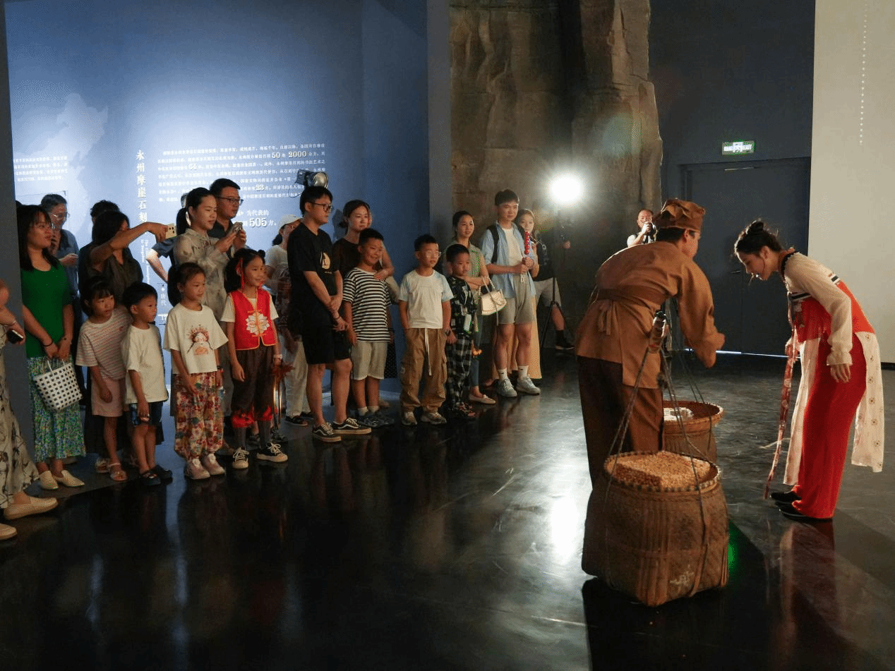 本网讯(通讯员 赵丹 傅子欣 龙慧 )当传统镜框式舞台的边界被打破,艺术如何更好地为弘扬中华优秀传统文化赋能?6月8日,音乐与舞蹈学院春华秋实舞蹈艺术工作坊的师生们以浯溪碑林摩崖石刻数字博物馆为“流动舞台”,以“石刻文物活化”为创意,通过“文化+科技+艺术”创新融合,让游客沉浸式、互动式体验石刻文化的魅力。
