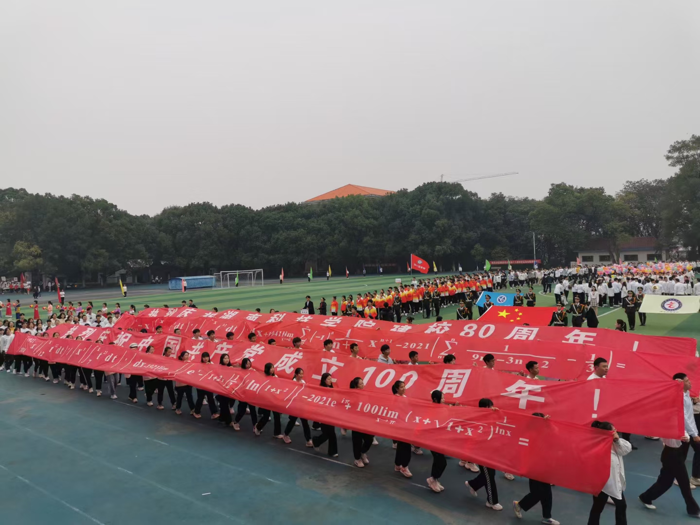 在开幕式上,我院以独有的理学浪漫,借答案为100和80的数学公式,对中国共产党成立100周年和星空app官网建校80周年表达热烈的祝贺。壮观的阵容,彰显着坚持不懈的信念;坚定而有力的脚步声,衬托出必胜的决心!比赛过程中,那一道道靓丽的身影是我院运动健儿在挥洒汗水;那此起彼伏的呐喊声是啦啦队成员在加油助威;那终点处翘首以待的是我院志愿者在等待运动员们凯旋。