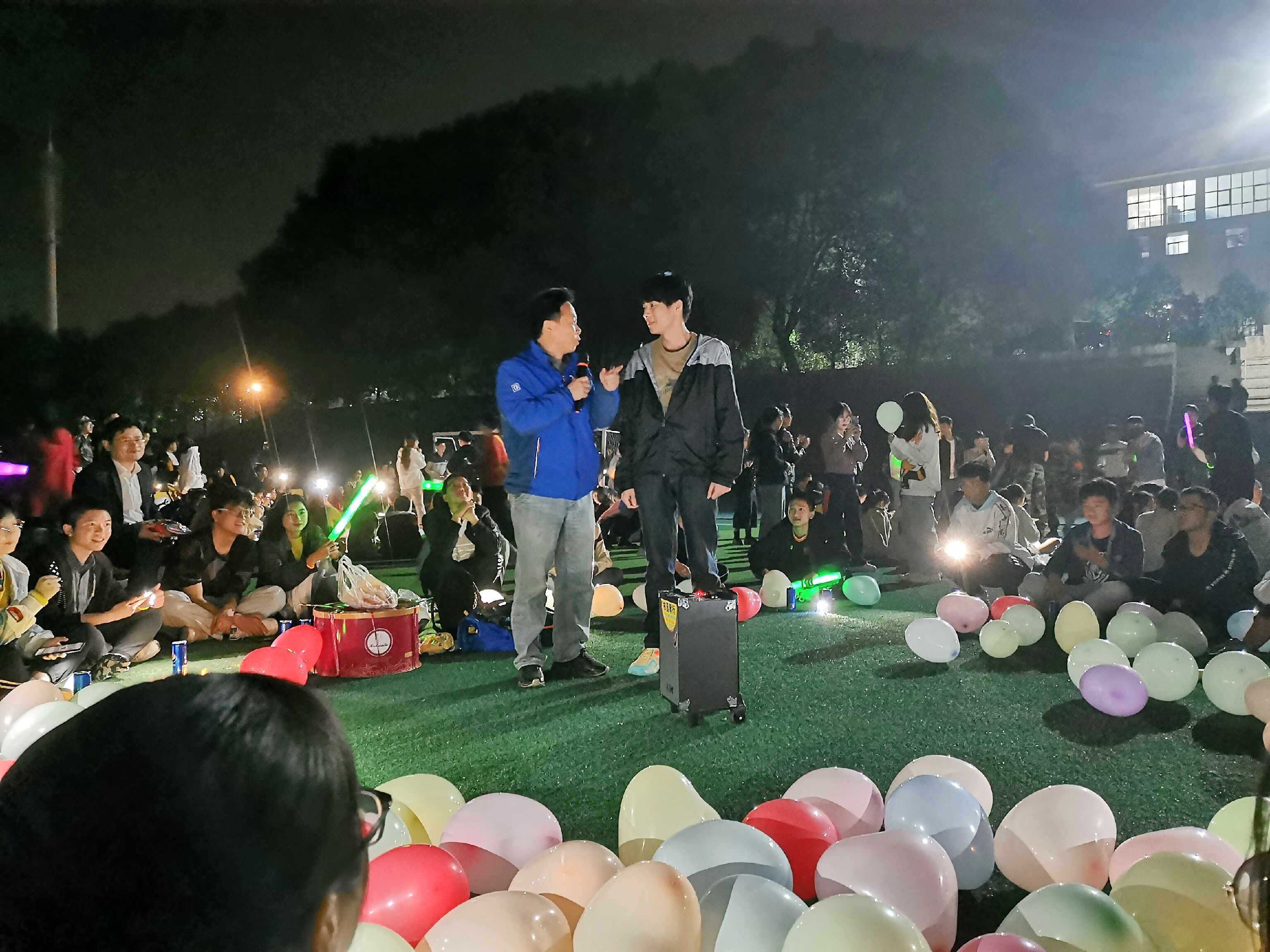 数应2004班首先开始了活动,随后各个班级也争相开始了“破冰之旅”。“科宝一起唱”的节目激活各个寝室的热情,不少新生在这个节目中亮出了自己的风采。“耳语传真”游戏让同学们拉进了彼此的距离,“五湖四海一条船”的游戏则凝聚了班级的力量。还有不少班级玩起了“五毛和一块”的游戏,大家放下拘束,敞开了心扉。除了班级内同学间的互动,还有不少班级发起联谊,与其他班级共享了这晚的“破冰之行”。过程中,老师、副班们更是积极地与同学们一起互动,同学们也热情参与其中,田径场不时响起悠扬的歌声,游戏中的欢笑萦绕在耳畔,现场气氛轻松而又热烈。最后,2020级辅导员杜俊杰以一曲《怀念战友》结束了此次活动。