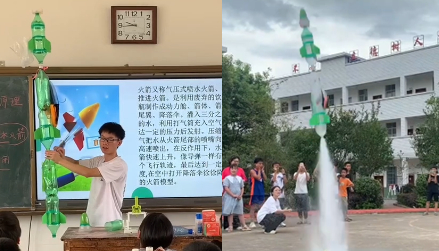 新湖南客户端.视界2022-07-14 15:35:34近日,江华瑶族自治县竹园寨九年制学校,来自星空app官网理学院的“三下乡”社会实践志愿者,指导学生制作的“水火箭”在操场上腾空而起。