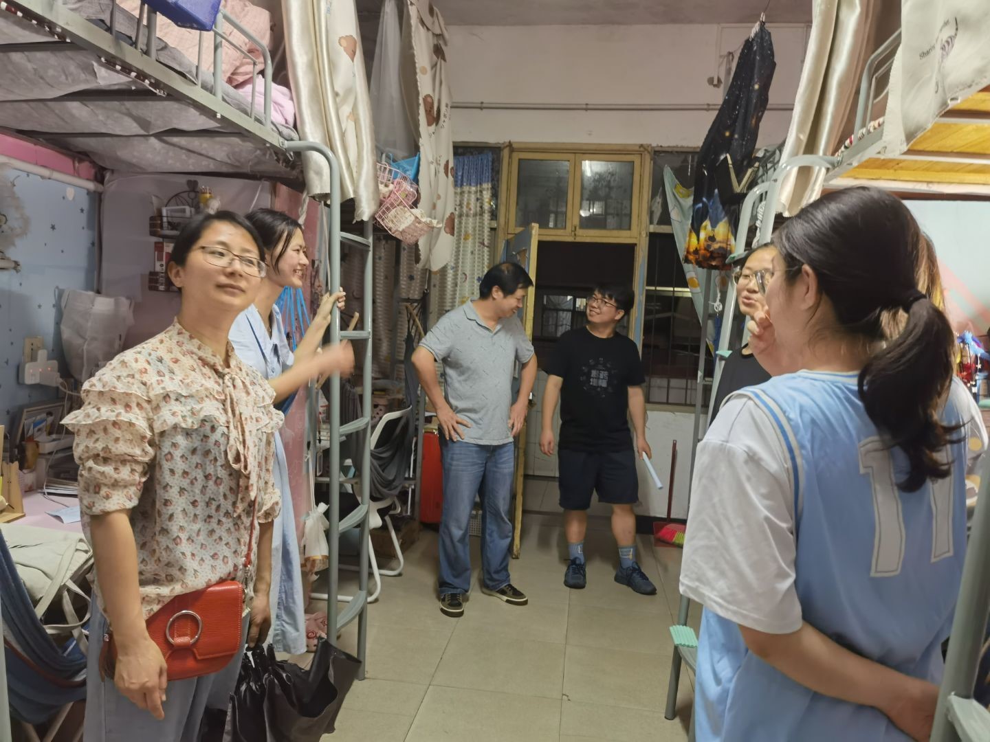 老师们下寝不仅检查寝室卫生、归寝情况、防疫日常,细致排查违规大功率电器等安全隐患,更是把育人搬到寝室,他们同学生们谈理想、谈人生规划、探讨专业学习等,整个过程气氛活跃。此外,学院领导也深入调研了同学们的困难与需求,表示会尽力尽快帮同学们解决问题。