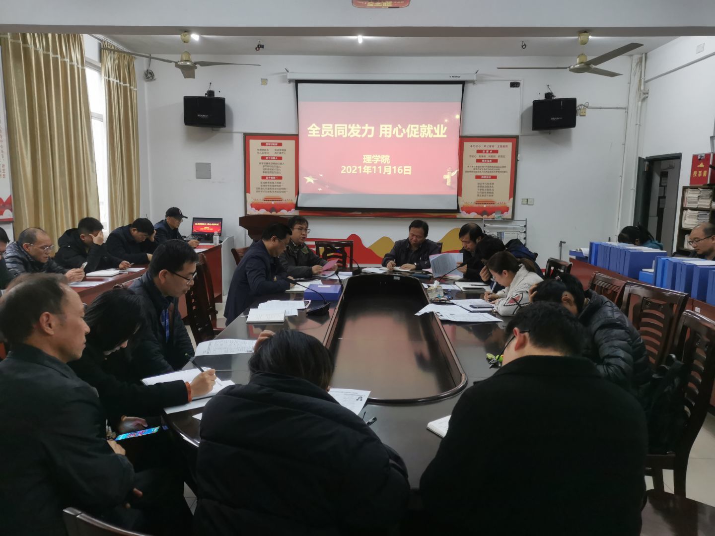 本网讯(通讯员 谢美)2021年11月16日,理学院召开2022届毕业生就业工作推进会,全体院领导、毕业生班主任及毕业生辅导员参加,会议由党总支副书记黎建军主持。