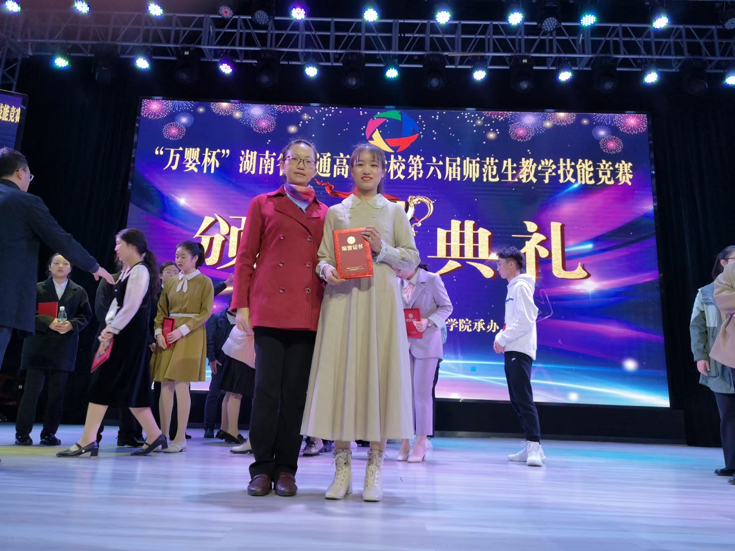 本网讯(通讯员 戴兴鸿)11月21日,湖南省第六届师范生技能竞赛在衡阳师范学院举行,我院由周宇剑老师指导的杨学凤和朱湘萍老师指导的谢涛玲在此次竞赛中分别获得了一等奖和二等奖,取得了骄人的成绩,学校荣膺优秀组织奖。