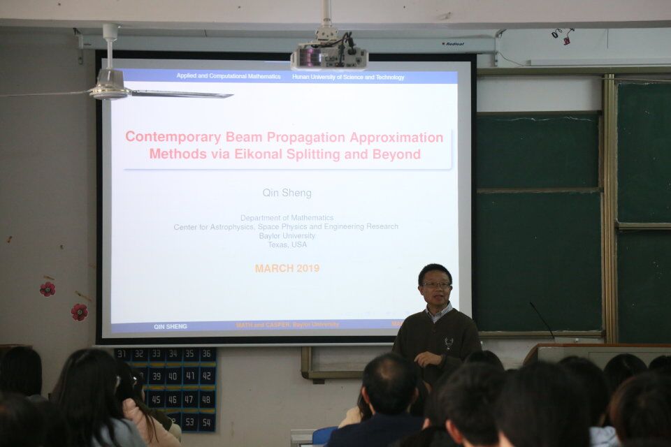 盛秦教授首先分享了两位来自印度的著名数学家Srinivasa Ramanujan和Satyendra Nath Both的典型故事。然后围绕Contemproary Bean Propagation Approximation Methods Via Eikonal Splitting And Beyond这个主题给大家分享了他的最新研究成果。他表示当前已经进入量子信息时代,数学在科技领域将扮演更重要的角色,未来数学方面的应用与科技创新都会为同学们带来更广阔的前景,希望同学们都能学好专业,把握机遇,迎接挑战。