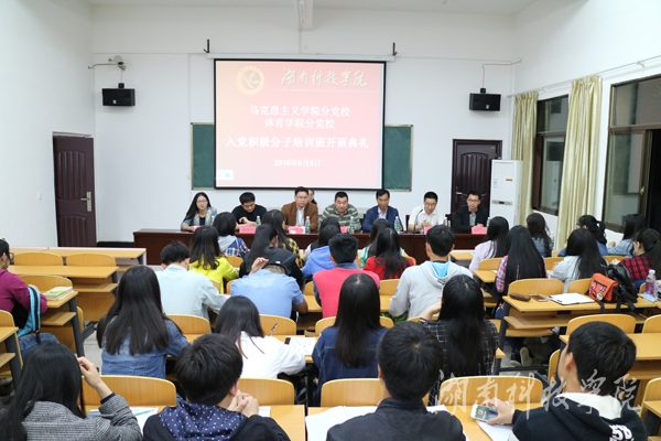 本网讯(通讯员 全伟 裴滢)5月9日晚,由马克思主义学院与体育学院分党校联合主办的入党积极分子培训班开班典礼在学校训练馆四楼多媒体教室举行。近60名学员参加此次培训。