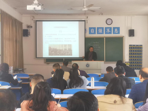 会上,谢周艳、黄亚鹏、何宝君、薛艳茹、符小勇五位老师分别代表各自教学系部,选取课本当中的一个知识点并结合党的十九届六中全会精神进行了15分钟的课堂教学展示。