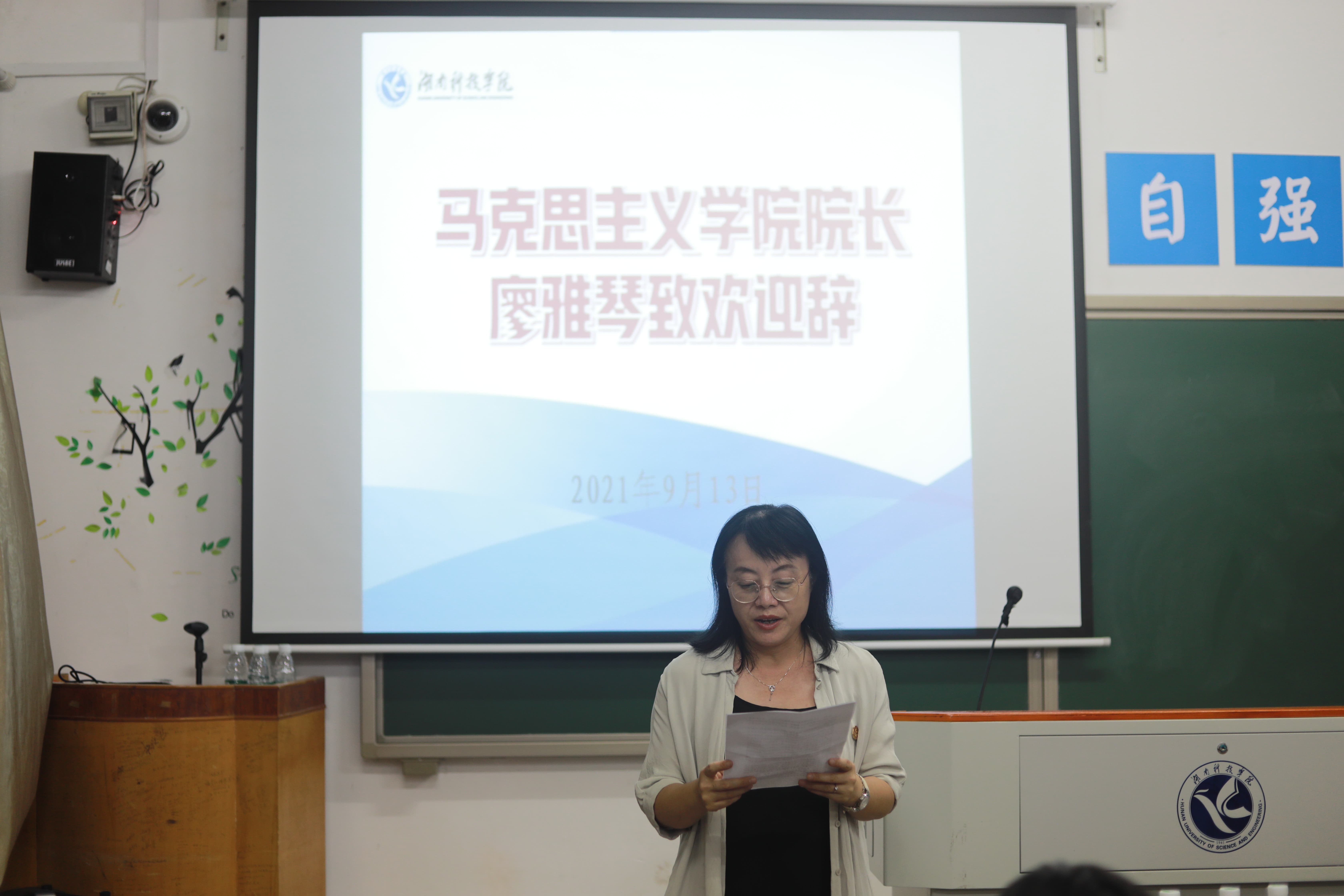 见面会上,廖雅琴院长首先代表马克思主义学院全体老师对2021级新生的到来表示热烈的欢迎。廖雅琴向同学们介绍了马克思主义学院的师资队伍、办学条件、教学质量、学生培养特色等多方面进行了详细介绍。廖雅琴院长对新生提出三点要求。第一、要志存高远,凝炼方向,持之以恒。第二、要勤于思考,善于巧干,勇于创新。第三、要立德修身,坚守规则,协同共进。望大家能够共勉,在人生道路上越走越远。