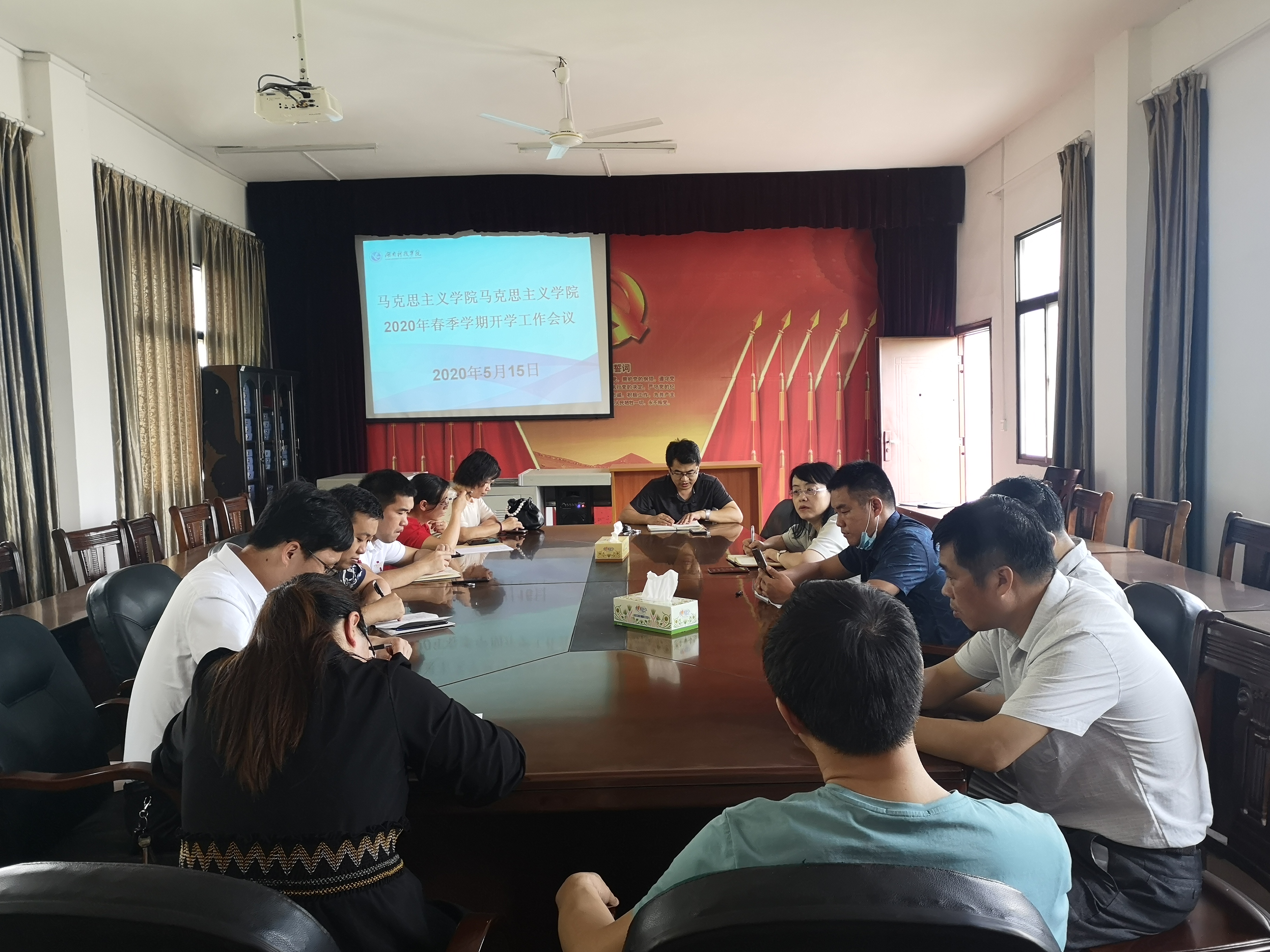 本网讯为扎实做好新学期疫情防控和开学准备工作,5月15日下午,马克思主义学院在鹤鸣楼405会议室召开党政联席扩大会议,讨论了2020年春季学期学生返校复学工作。会议由学院党总支书记郑向晖主持,学院领导班子成员、三办主任、及全体班主任参加。