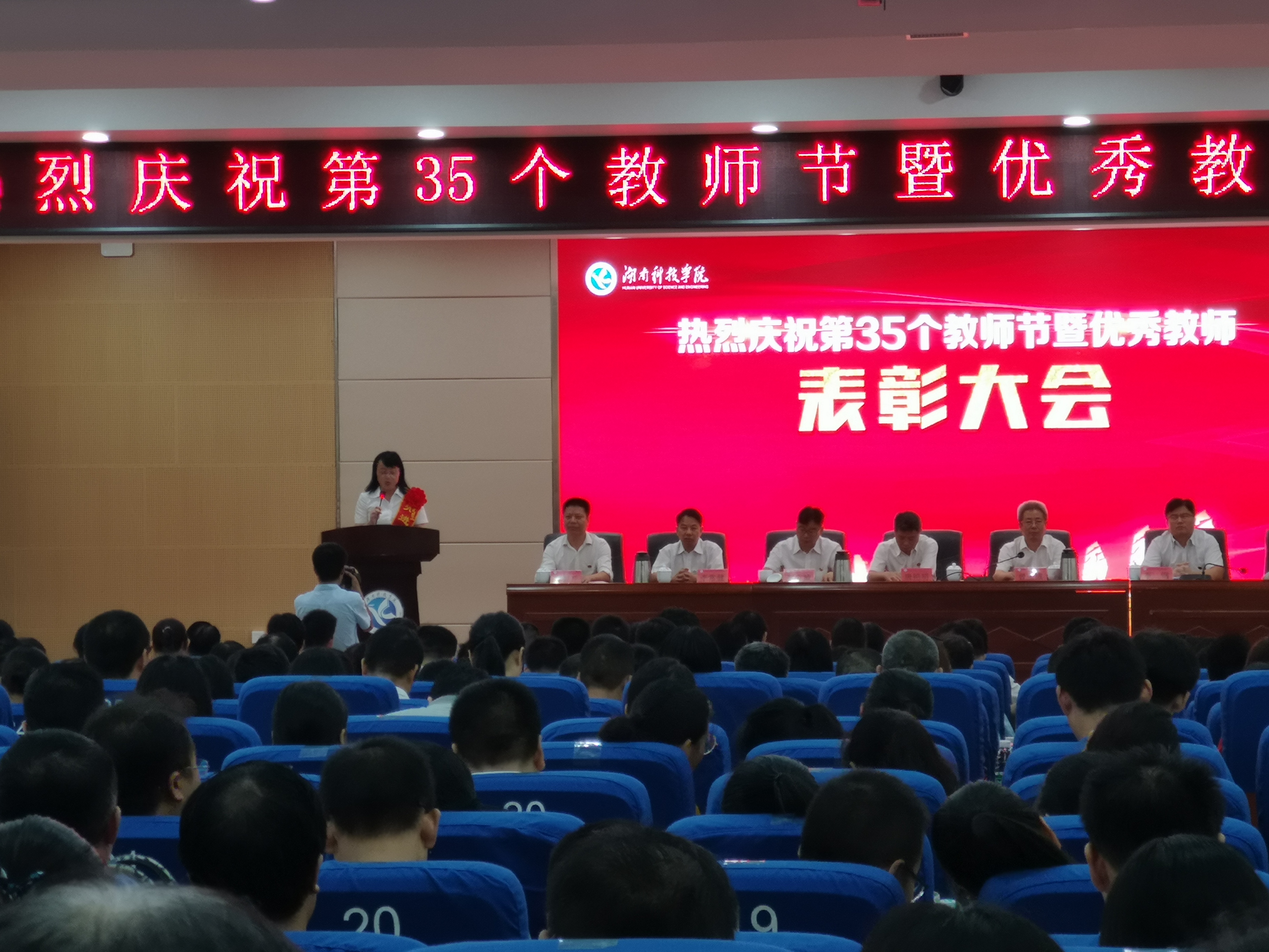 本网讯(通讯员李艳)9月10日下午,学校热烈庆祝第35个教师节暨优秀教师表彰大会在潇湘大讲坛隆重召开,党委副书记、校长李钢,校领导唐艳明、宋宏福、彭立威、郑山明、李常健、吴小林、程智开以及教学学院全体教师,机关教辅单位副科级以上干部参加会议。会议由郑山明主持。