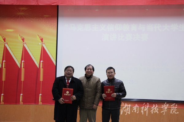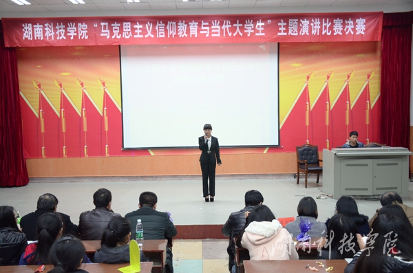 本网讯(记者 皮妍)“信仰马列有理,大家心中有梦”,为推动我校思想政治理论课教学改革,增进思想政治理论课教学的实效性,激发大学生理论学习的积极性,12月25日晚,马克思主义学院在明德楼报告厅举办以“马克思主义信仰教育与当代大学生”为主题的演讲比赛决赛。《别跟自己讲道理》、《为与时俱进的马克思主义,奋斗吧》、《我认识的马克思》等演讲荣获一等奖。