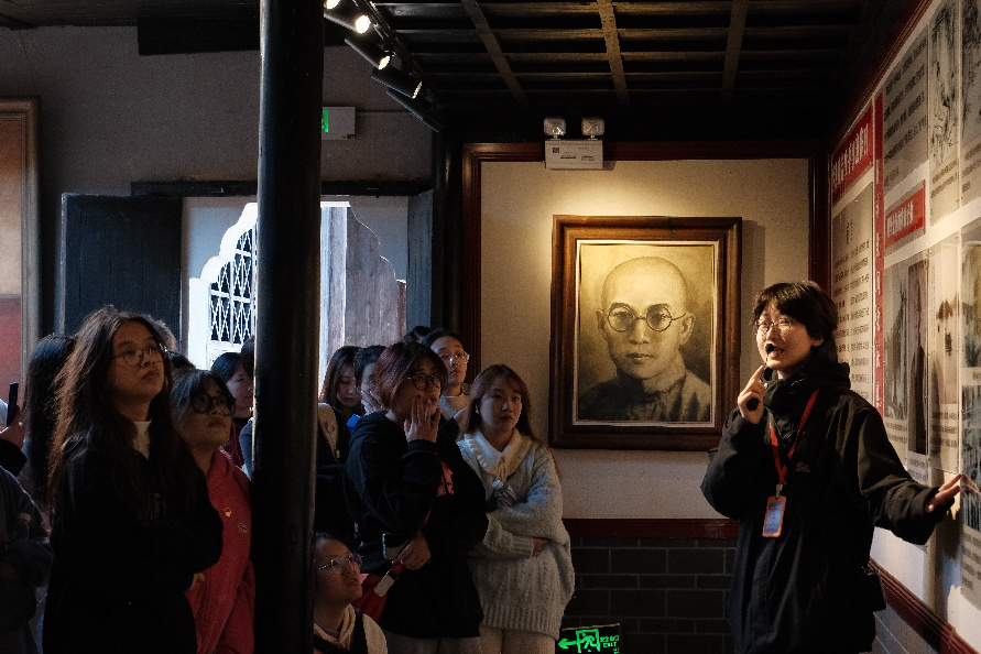 本网讯(记者 杨行青、周灵敏)11月19日下午,马克思主义学院2021级学生于李达故居和红六军团旧址开展永州红色文化概论外出实践课程。本次实践课程由马克思主义学院魏颖老师与周勇老师带队,2021级全体在校学生参加本次实践活动。