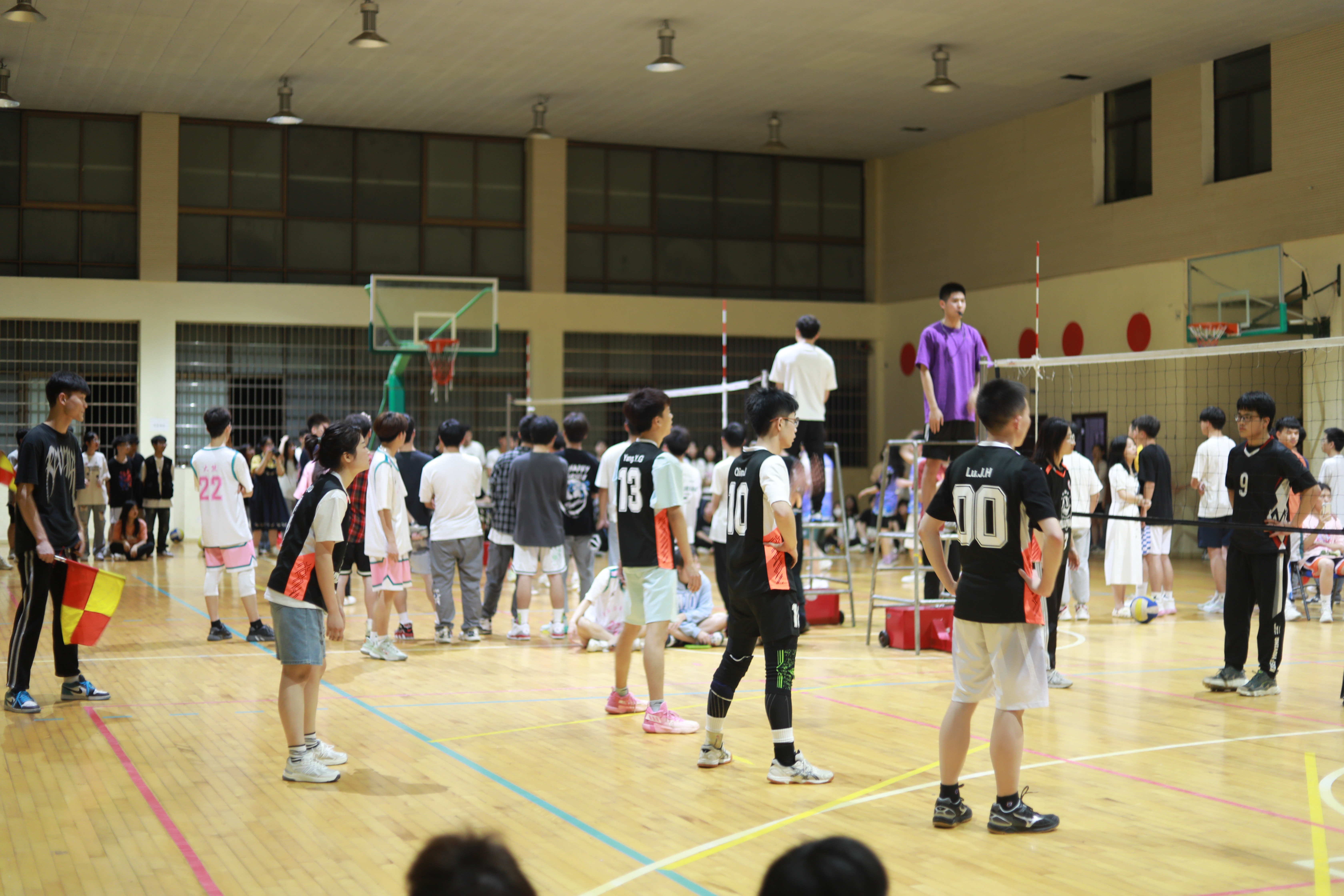 未开赛之前,排球馆里气氛已相当激烈,各院的观众聚集在赛场周围翘首以待。随着一声哨响,“战争”一触即发,精彩的比拼正式拉开帷幕。