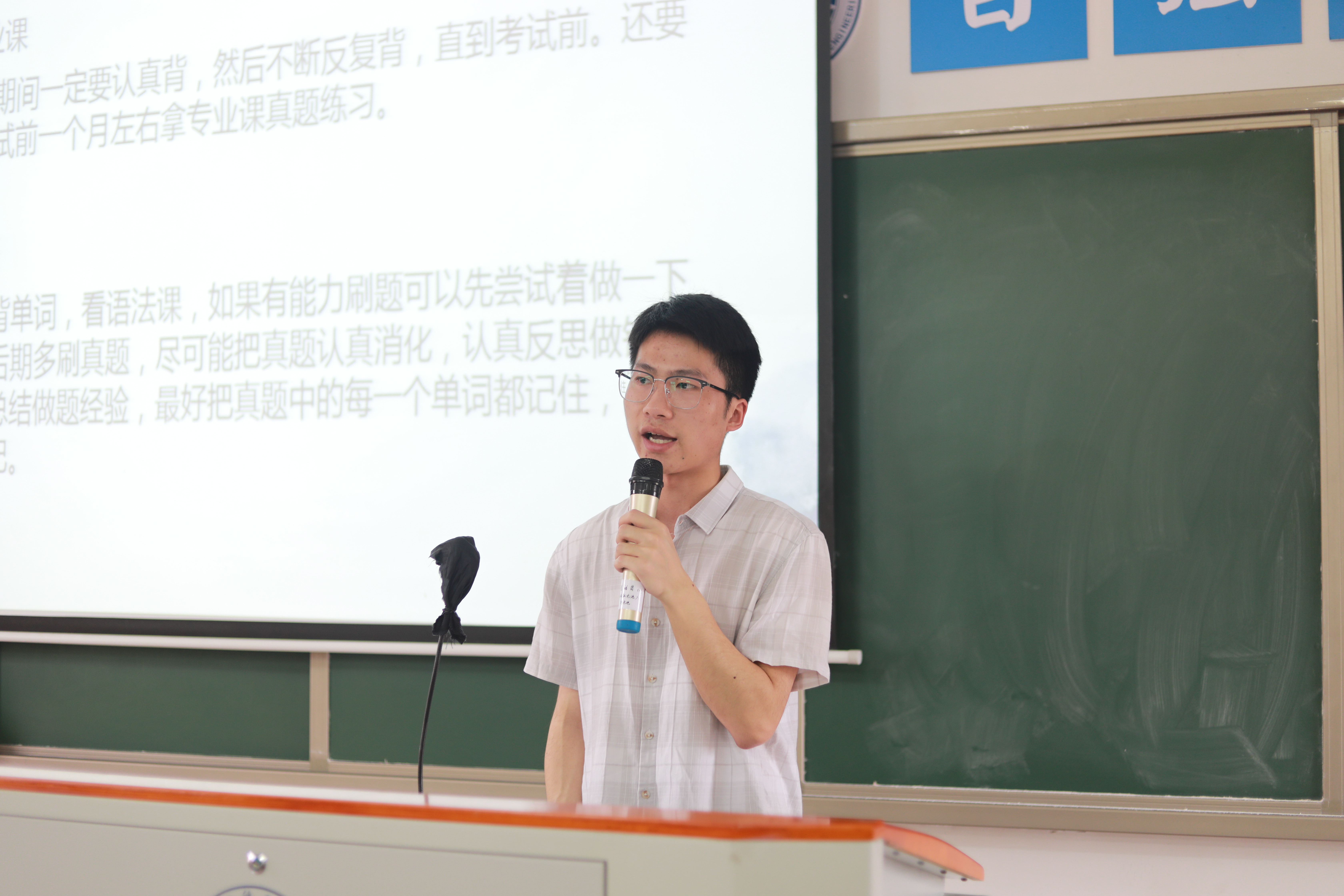 会后,高丹针对以上学子的经验分享做出总结,他强调:考研要有十分坚定的信念,要认清自己的实际能力,不断提升心理抗压能力。“希望同学们在备战考研中要:克服困难不放弃,科学复习讲效率,多求反馈求支持,劳逸结合调状态。”高丹最后用四句话总结道。