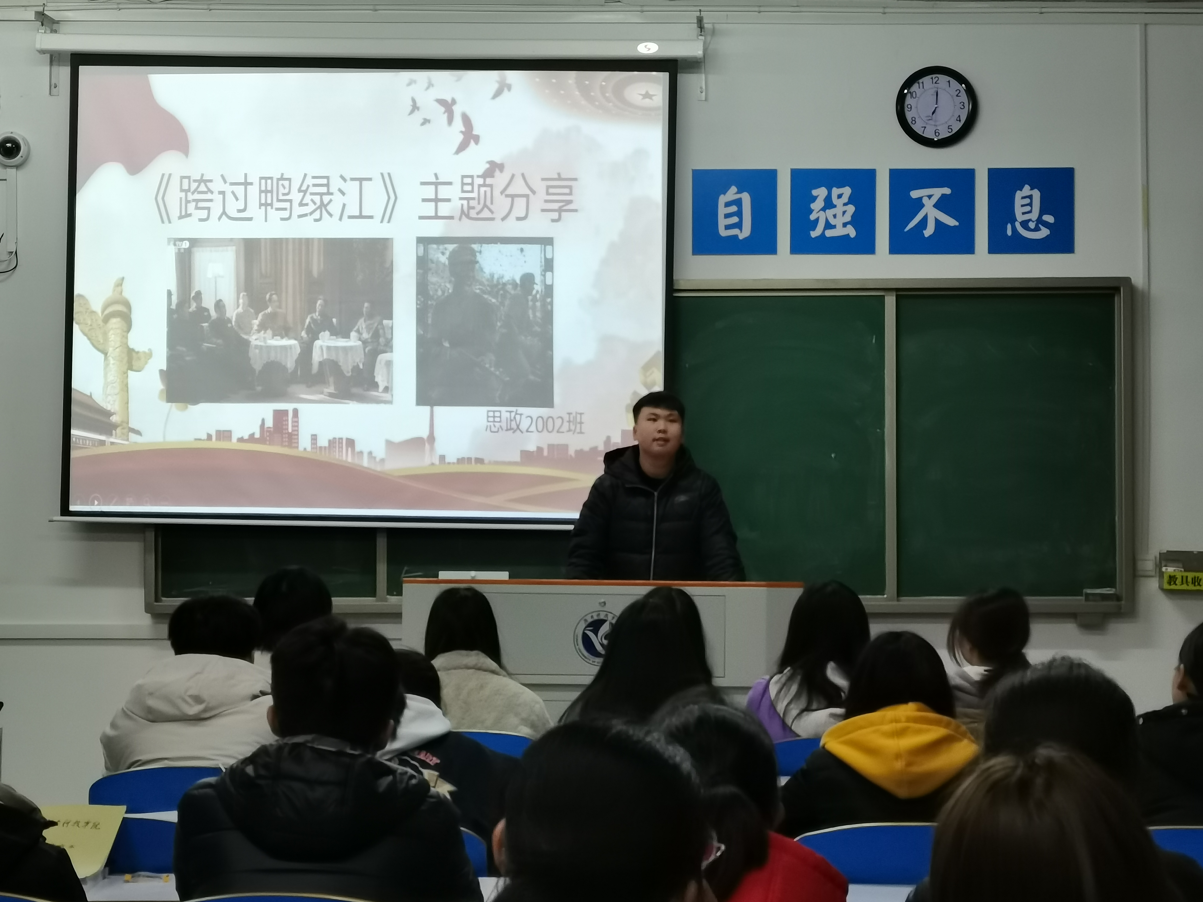 此次活动,同学们首先对电视剧《跨过鸭绿江》部分片段进行了再次观看,重温了电视剧中感人情景,随后,同学们根据视频片段对其进行了分享。