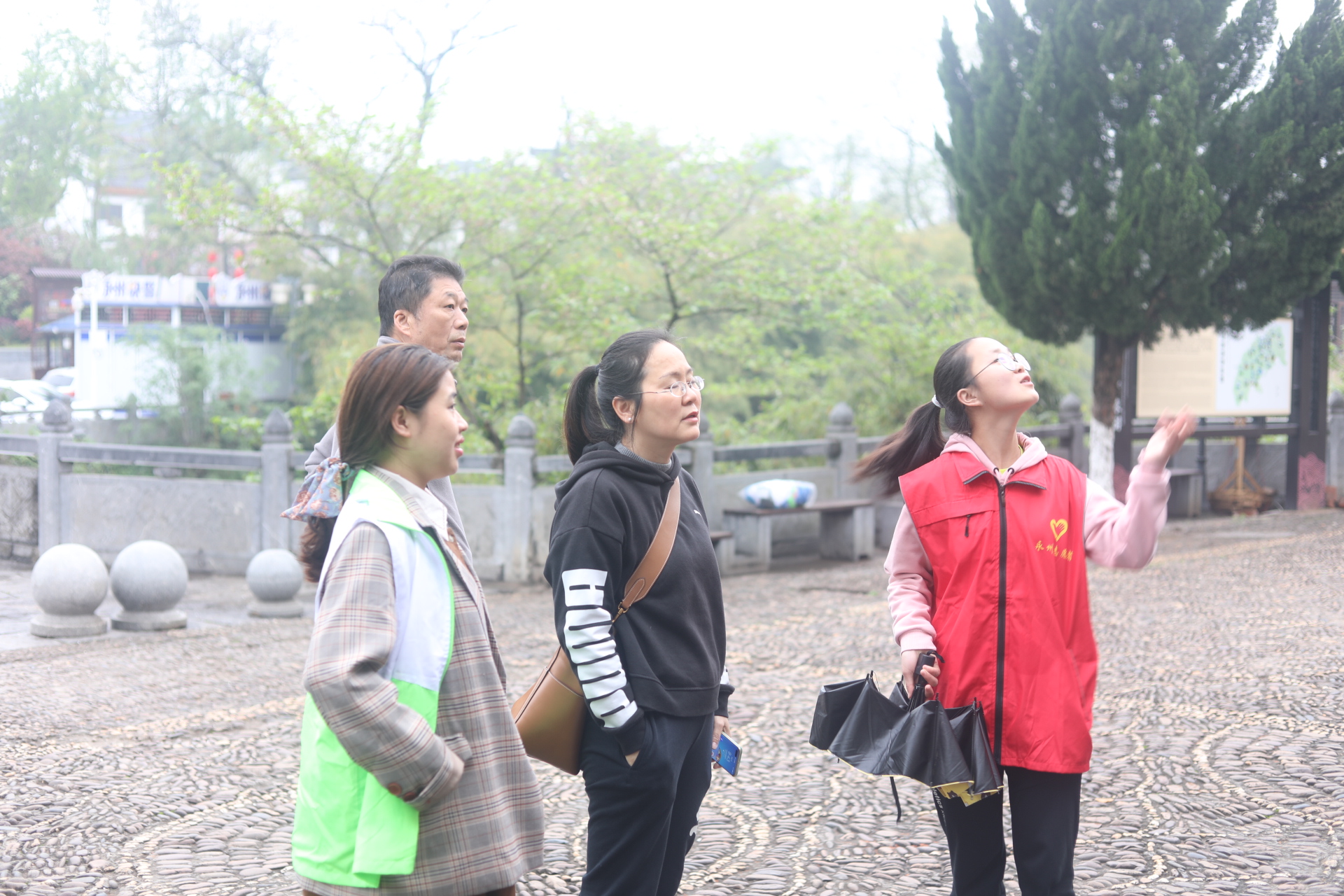 志愿者们在担任导游之余,还随时关注随地乱扔垃圾的现象,及时制止,并主动清理地面垃圾,保护景区环境,积极维护文明有序的参观秩序。