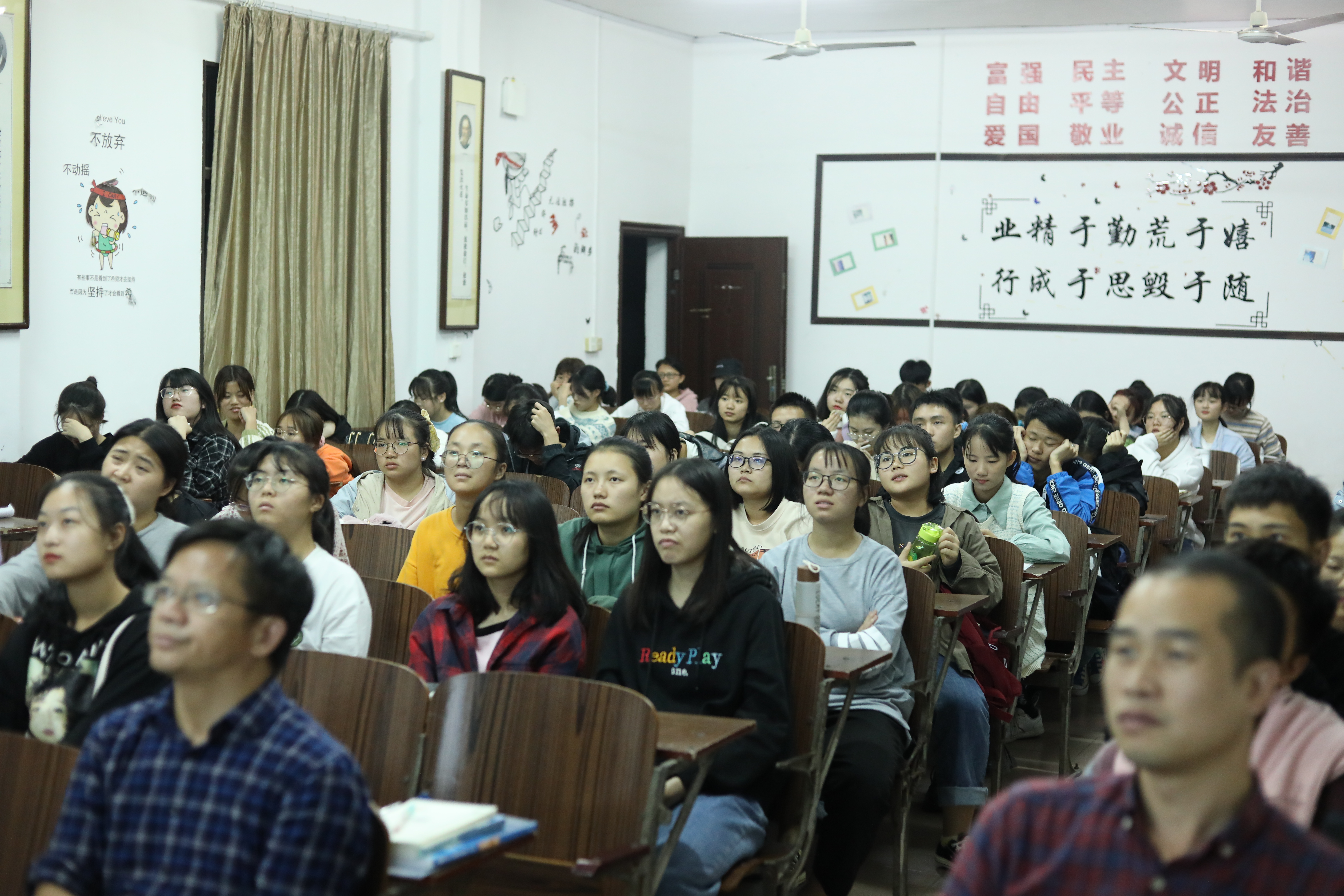 本网讯(通讯员 吴祖琳 王华炜) 11月19日,为弘扬中华优秀传统文化,引导同学们重视汉字书写,我院特邀全国著名国礼艺术大师马君声老师于鹤鸣楼501教室为同学们做“书法艺术的欣赏与创作书法素养”培训讲座,讲座由李钟麟教授主持,20级全体同学参加。