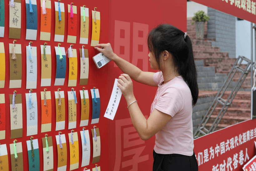 思政2401级新生谭佳欣说“希望在马院可以愉快地度过四年,留下最美好的回忆,并且勇敢做自己,开朗、乐观向上,完成自己的目标,加油。”