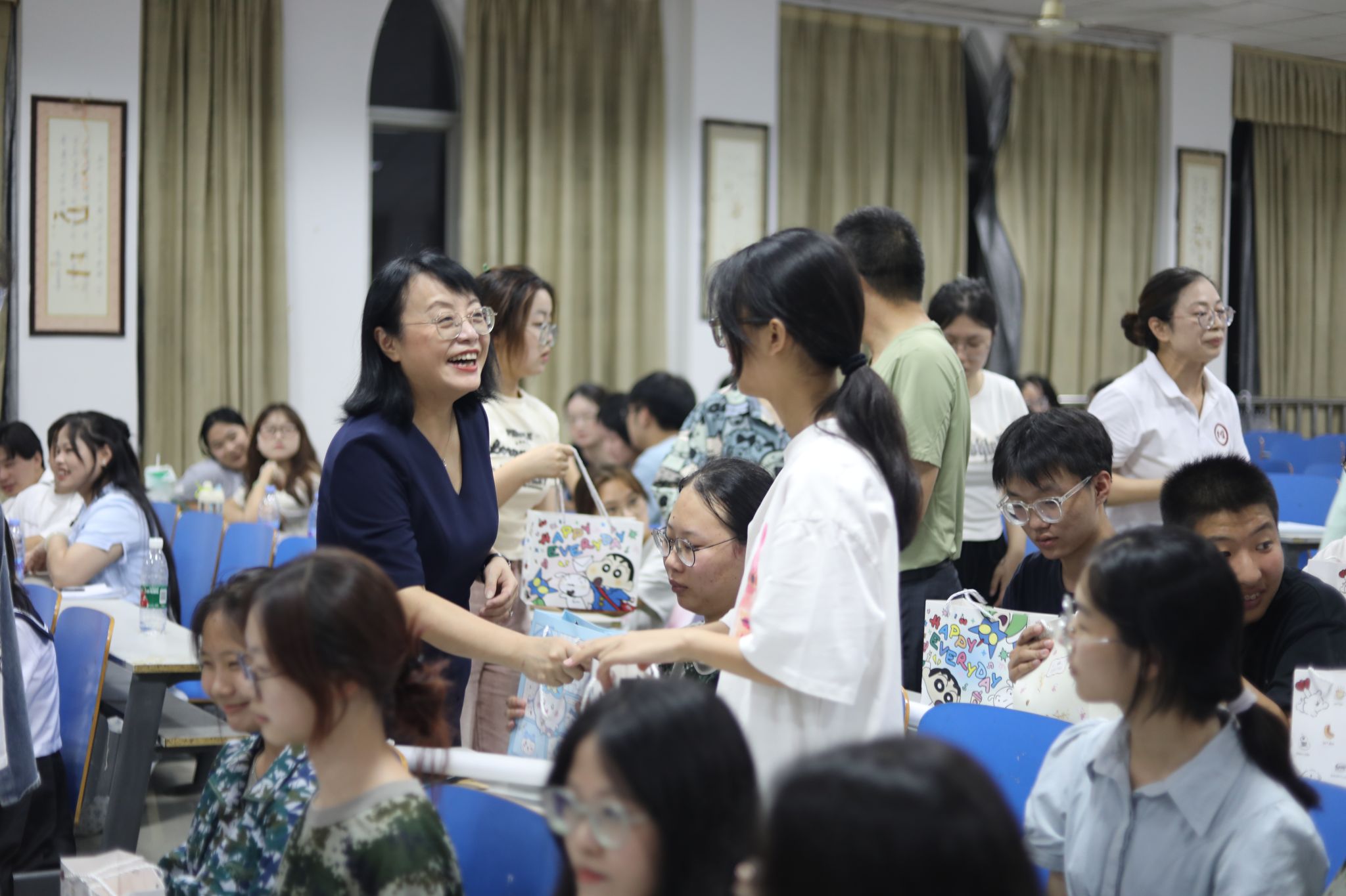 晚会伊始,我院院长廖雅琴对前来参会的全体师生表示热烈欢迎,送上节日的祝福,并寄语新生要珍惜大学时光,坚定理想信念,努力学习;随后,参加晚会的老师们一起向全体新生们发放了月饼和苹果。